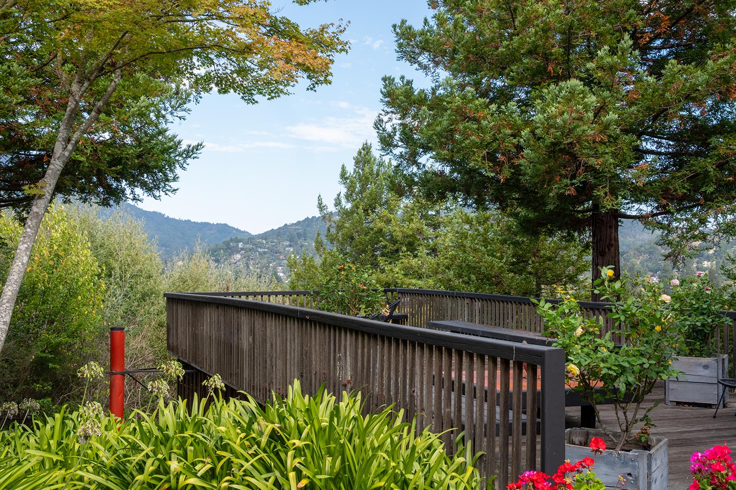 Rare materials of copper, teak, mahogany and old growth redwood set this beautiful home apart. Vignette views of the private garden from the bedrooms are coupled with vast views of Mount Tam from the living and dining rooms.